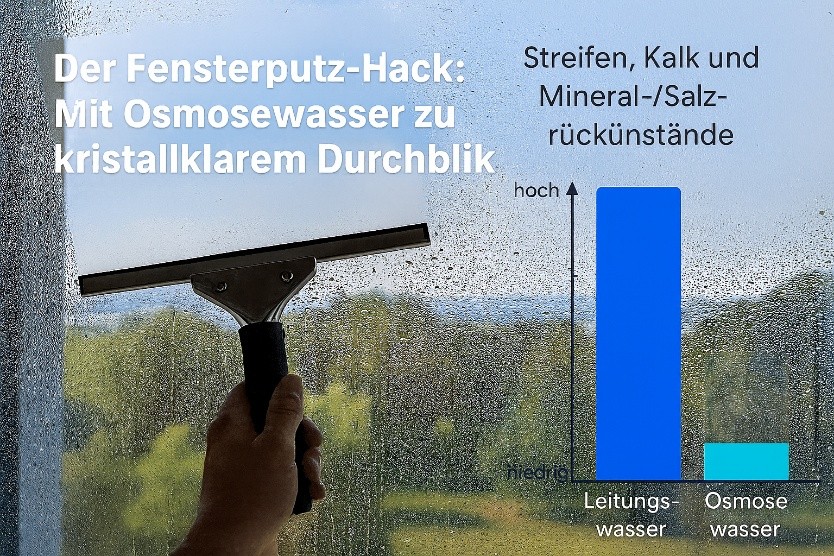 Osmosewasser ist nicht nur zum Trinken da. Es macht auch im Haushalt den Unterschied – besonders beim Fensterputzen. Keine Kalkflecken, kein stundenlanges Nachwischen, sondern klare Sicht in Rekordzeit.
