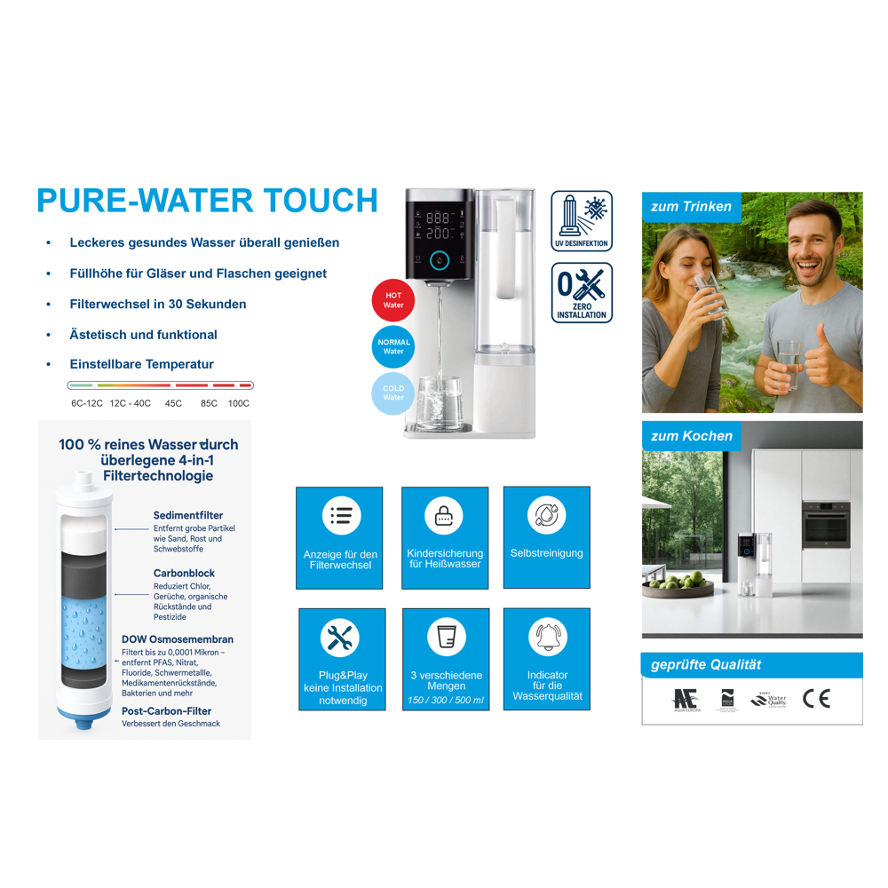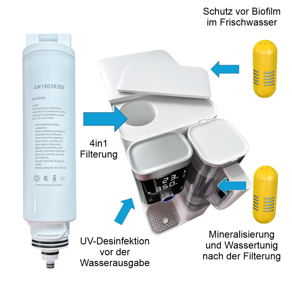 100% sauberes Wasser durch überlegene 4 in 1 Filtertechnologie
