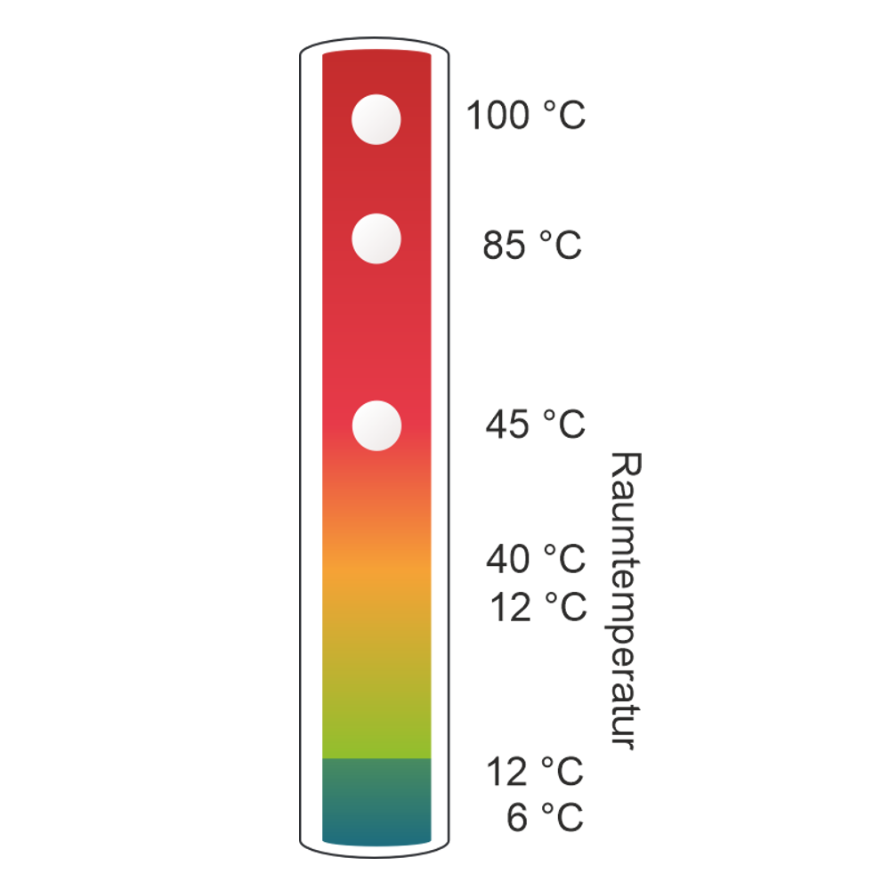 Temperaturen: 6 °C-12°C, 12°C-45 °C, 45°C-85 °C, 100 °C - Automatische Anzeige für den Filterwechsel